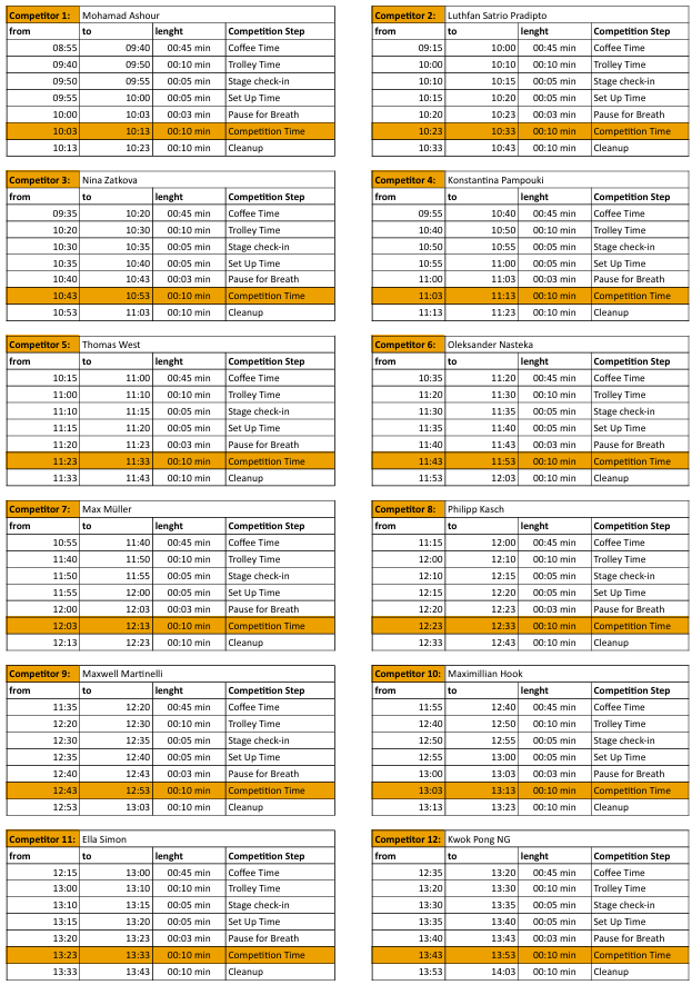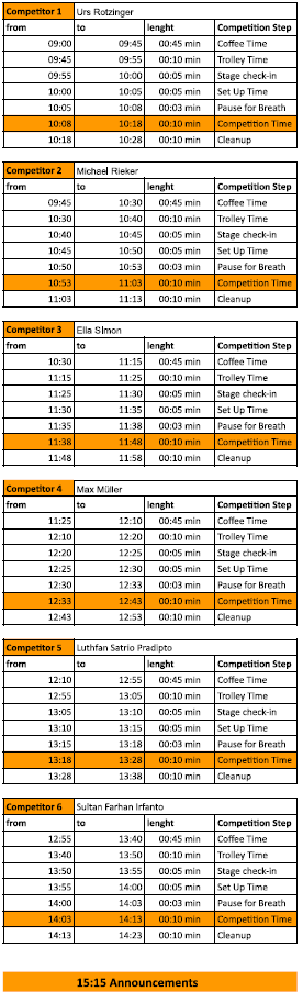 Für Euch Zuschauende bleibt die Bühne aber an Tag 2 auch dieses Jahr nicht leer! Denn an Tag 2 findet neben dem Compulsory Service hinter der Bühne auch die deutsche Cuptasting Meisterschaft statt!