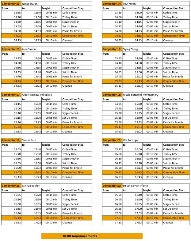 Zeitplan – Brewers Cup